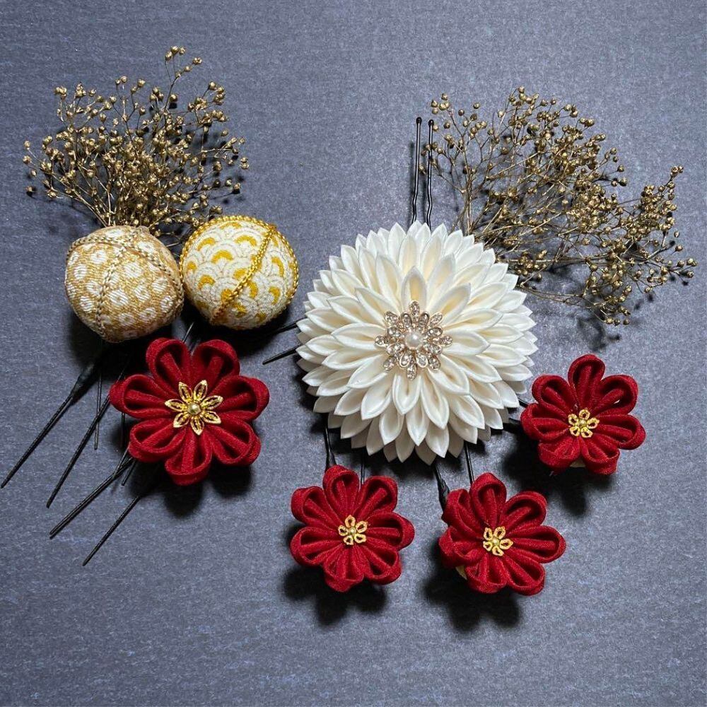 日本の気品と華やぎを纏う、晴れの日にふさわしい髪飾りセット。